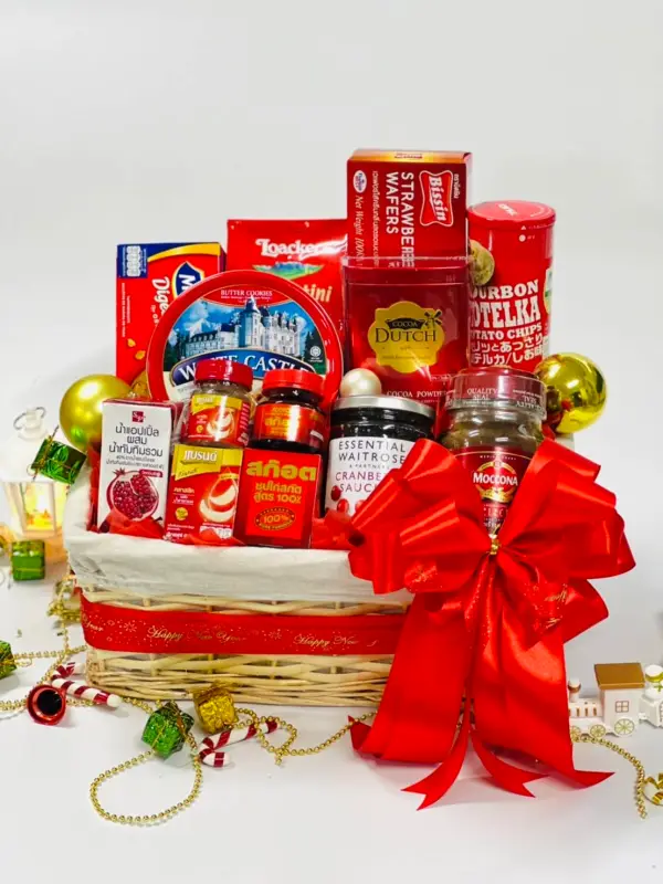 กระเช้าของขวัญ กระเช้าปีใหม่ ในตรีมสีแดง
