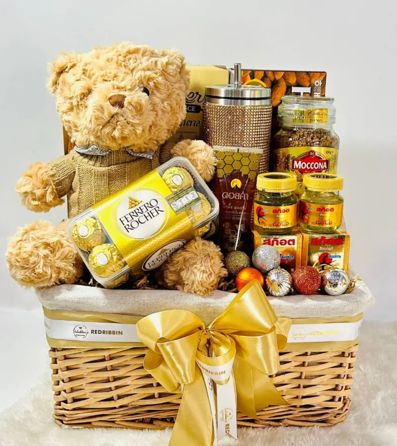 กระเช้าของขวัญ ในตรีมสีทอง