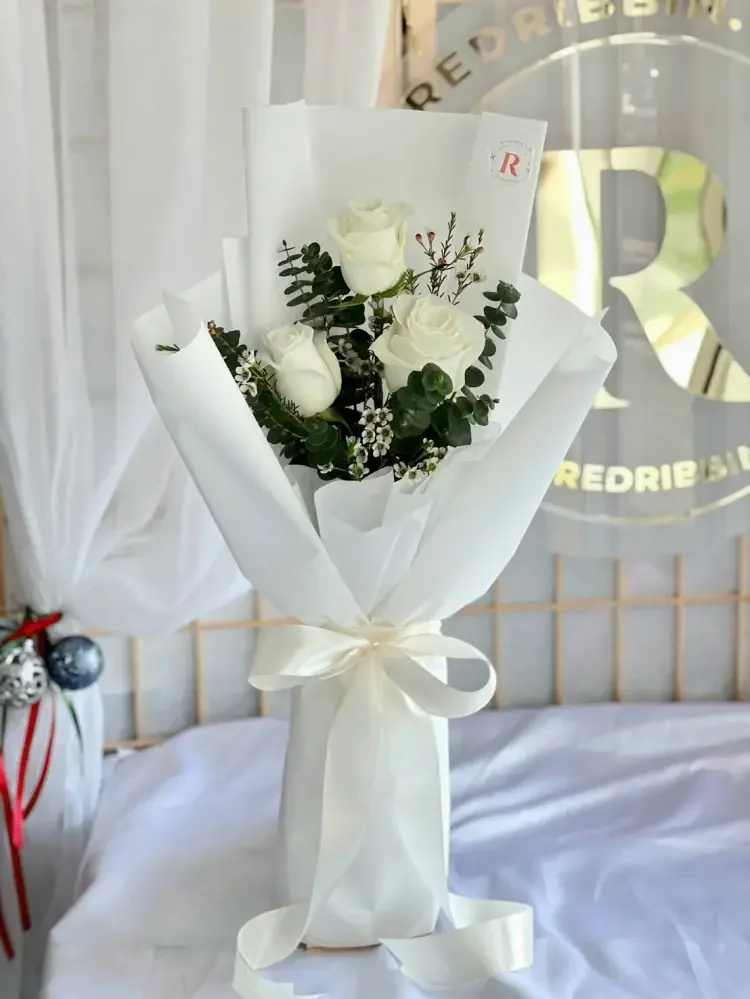 ช่อดอกกุหลาบขาว FW015 ช่อดอกไม้สีขาว