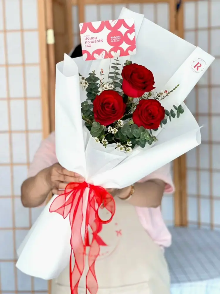 ดอกกุหลาบ 3 ดอก พิมพ์การ์ดฟรี ถึงมือผู้รับภายในวัน