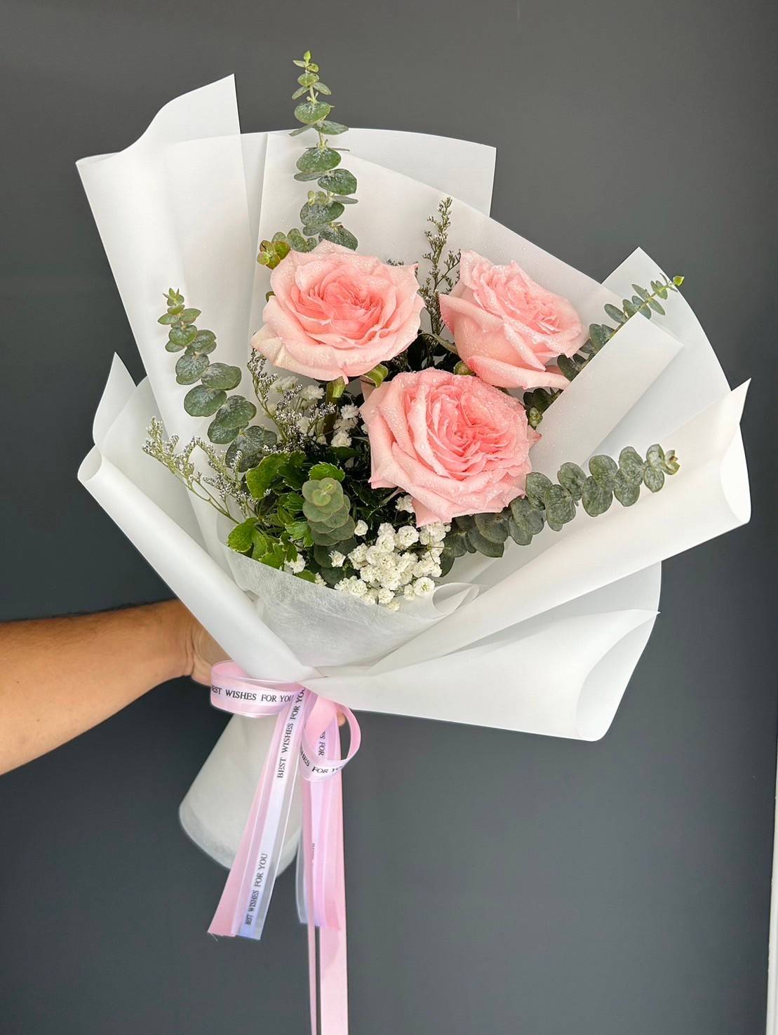 ดอกไม้สด กุหลาบสีแดง/ขาว /ชมพู 3 ดอก พร้อมการ์ดวันวาเลนไทน์