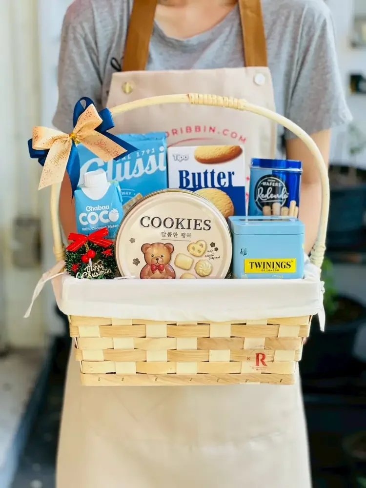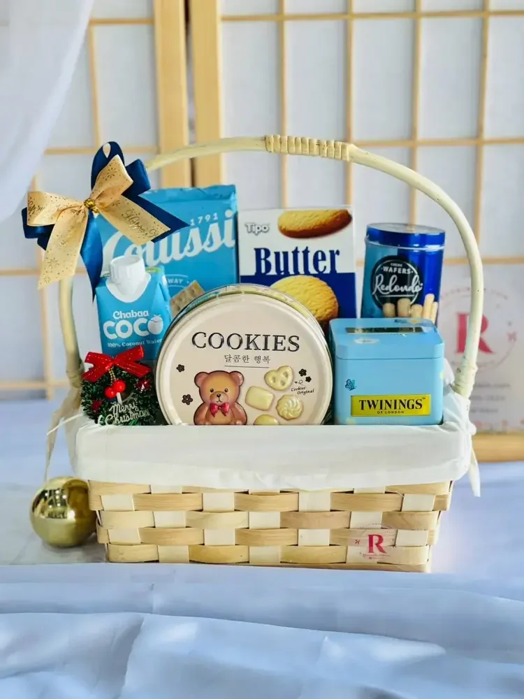 กระเช้าของขวัญปีใหม่ตรีมสีฟ้า