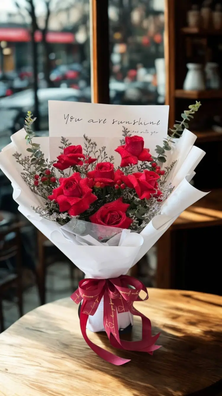 LOVE052 ช่อดอกกุหลาบแดง 6 ดอก