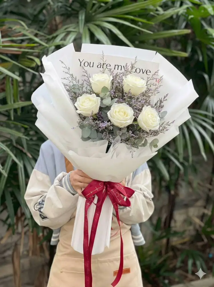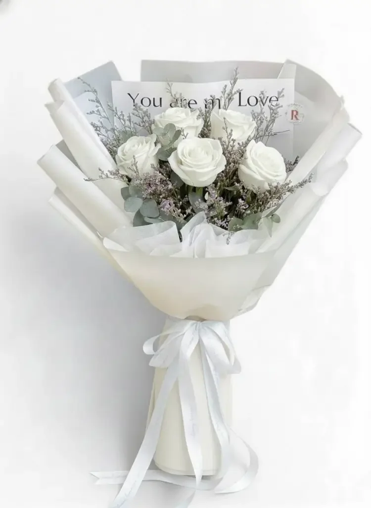 ช่อดอกกุหลาบสีขาว 5 ดอก LOVE051W